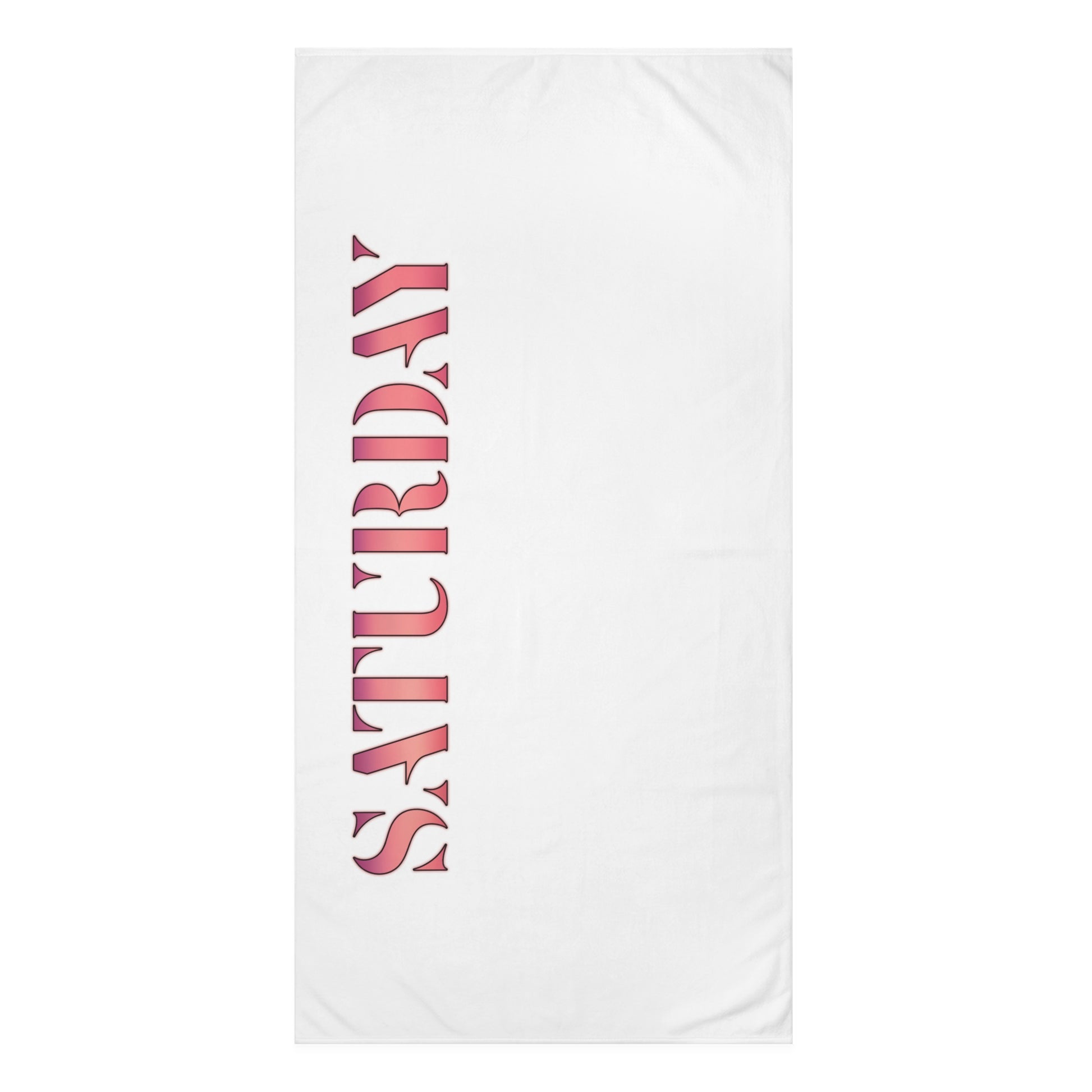 Beach Towel — 'SATURDAY' Pink Stencil Design