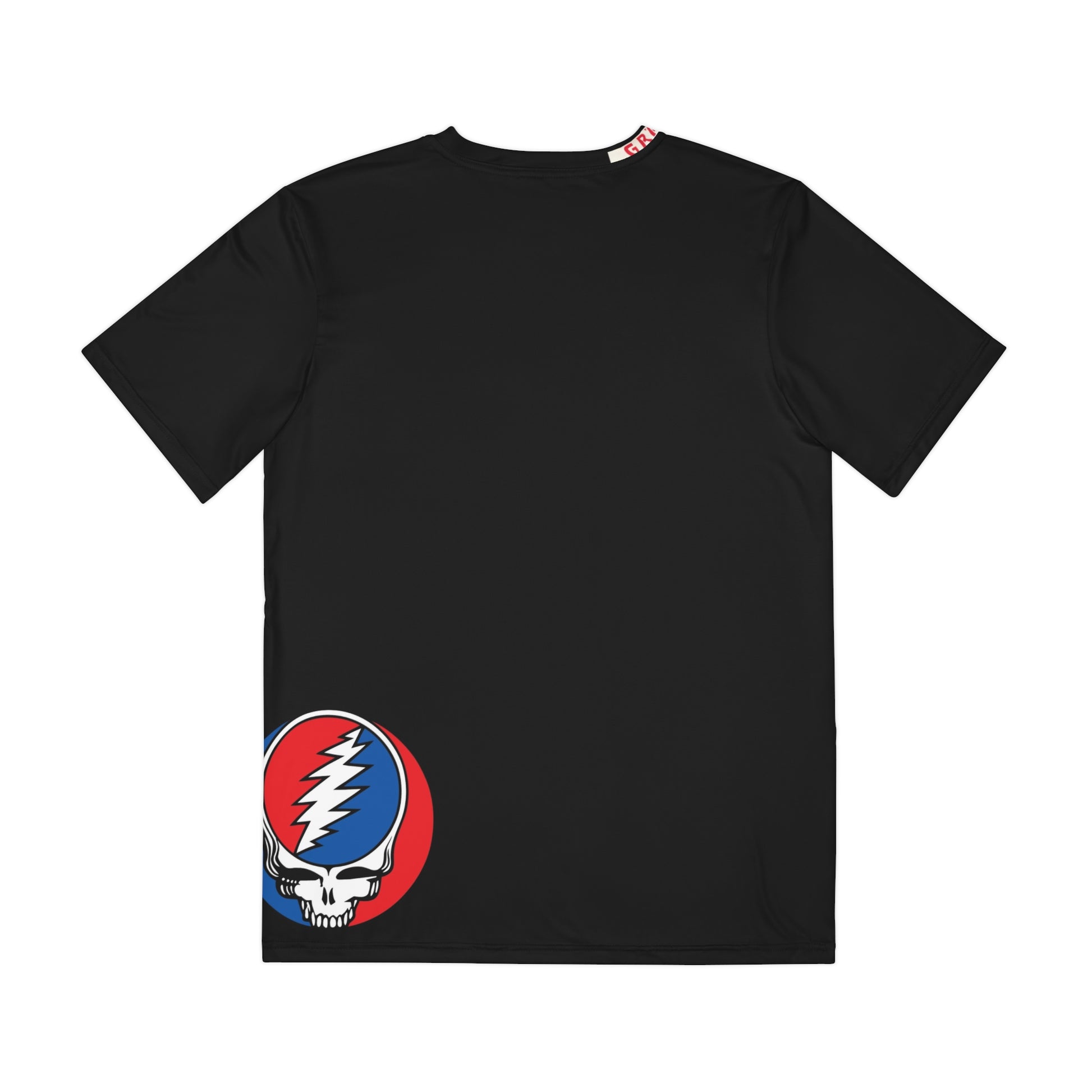 A lightweight, all-over print tee that wears like a concert memory. Soft brushed polyester keeps the shirt cool and quick-drying while the bold, vintage-inspired graphics — a floral wreath spelling “LOVE” sprinkled with tiny skulls, plus a classic lightning-skulled emblem — sit like patches of nostalgia. It drapes cleanly, holds its shape, and carries a subtle edge: imagine stepping out to an evening set, the crowd buzzing, your shirt quietly signaling where you belong. The printed collar tag and matched seam thread keep the look seamless and wearable day after night.