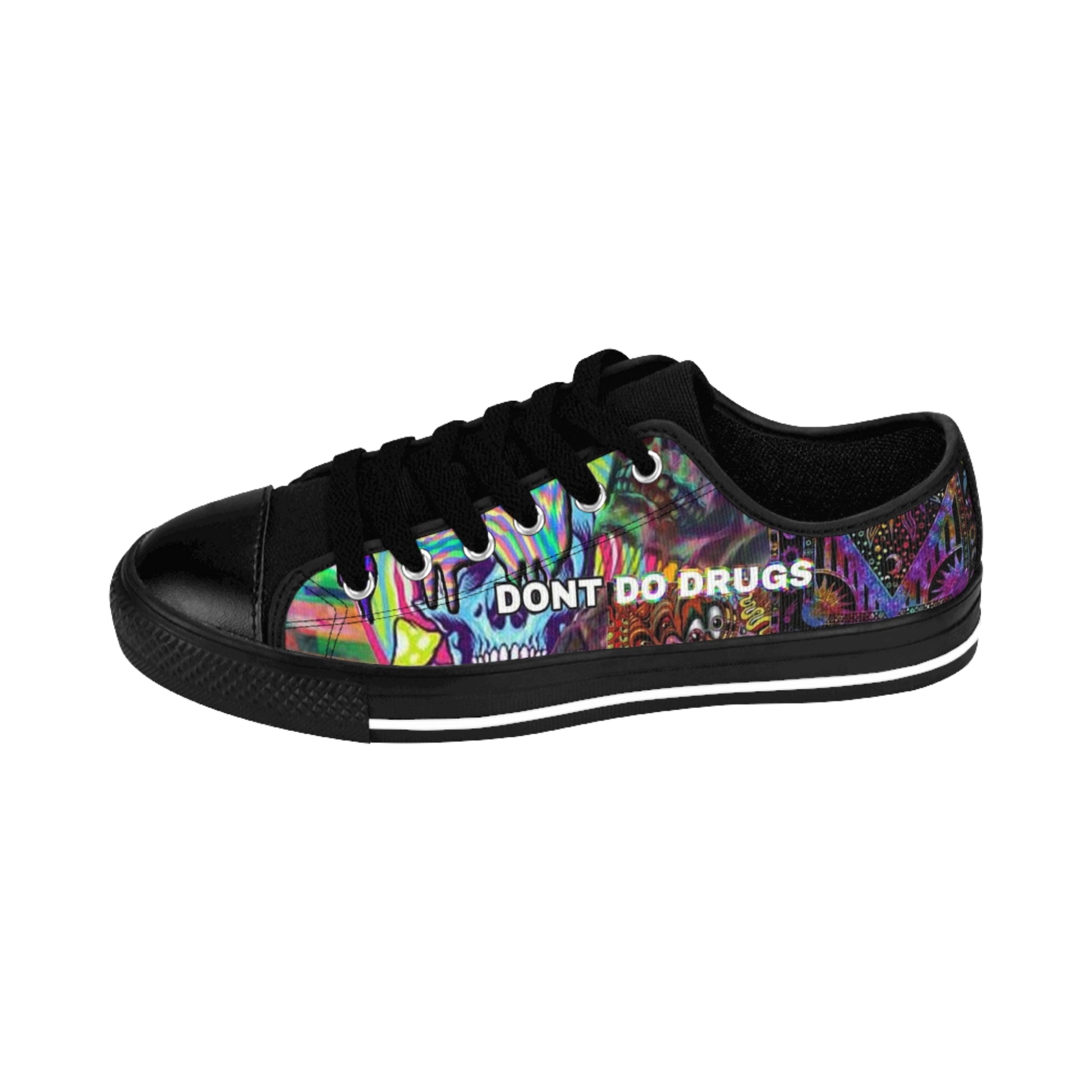 Men's Sneakers — Psychedelic Checkerboard Low-Top "DON'T DO DRUGS" Statement Shoes